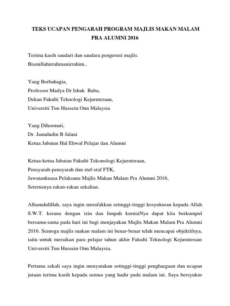 Teks Pengacara Majlis Kursus - Contoh Teks Ucapan Majlis Makan Malam Dan Format Ringkas